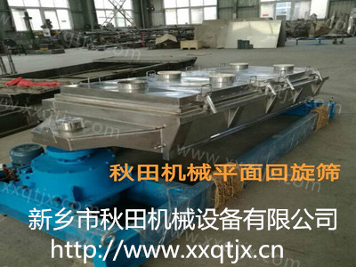 物料由進(jìn)料口緩沖勻流后進(jìn)入 第一層篩面除去大顆粒,其余的物料穿過第一層篩面后,進(jìn)入第二篩面篩去不合格小顆粒或粉末,合格成品經(jīng)篩面從出料口排出